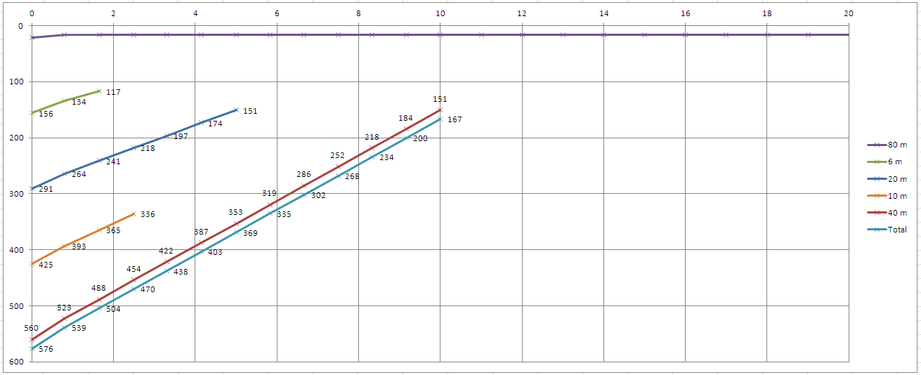 This spreadsheet shows the drill points, measured from the top of spacers. It was taken as granted from some website, that minimal distance between wires must be at least 5.5" (135 mm), to have not-so-narrow bandwidth. With caps height of 16 mm, excluding the first two of 21 mm, the following table has been created. It matches the no-scale right wing drawing above. The bottom line shows the total length of each spacer - where to cut it off.