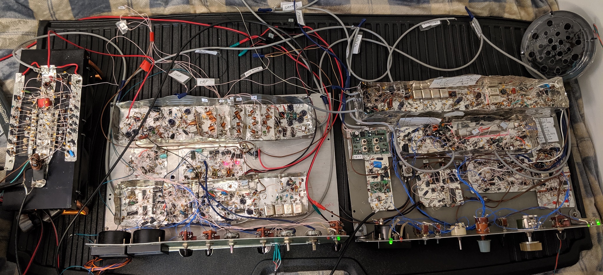 Monster trial tinned construction: Tinned Prototype Video - British Columbia Public Service Net 3,729 kHz, 70 Wt linear power amplifier, with full compression and +6dB Treble. Signal report: "25 over S9, with Roger Beep"